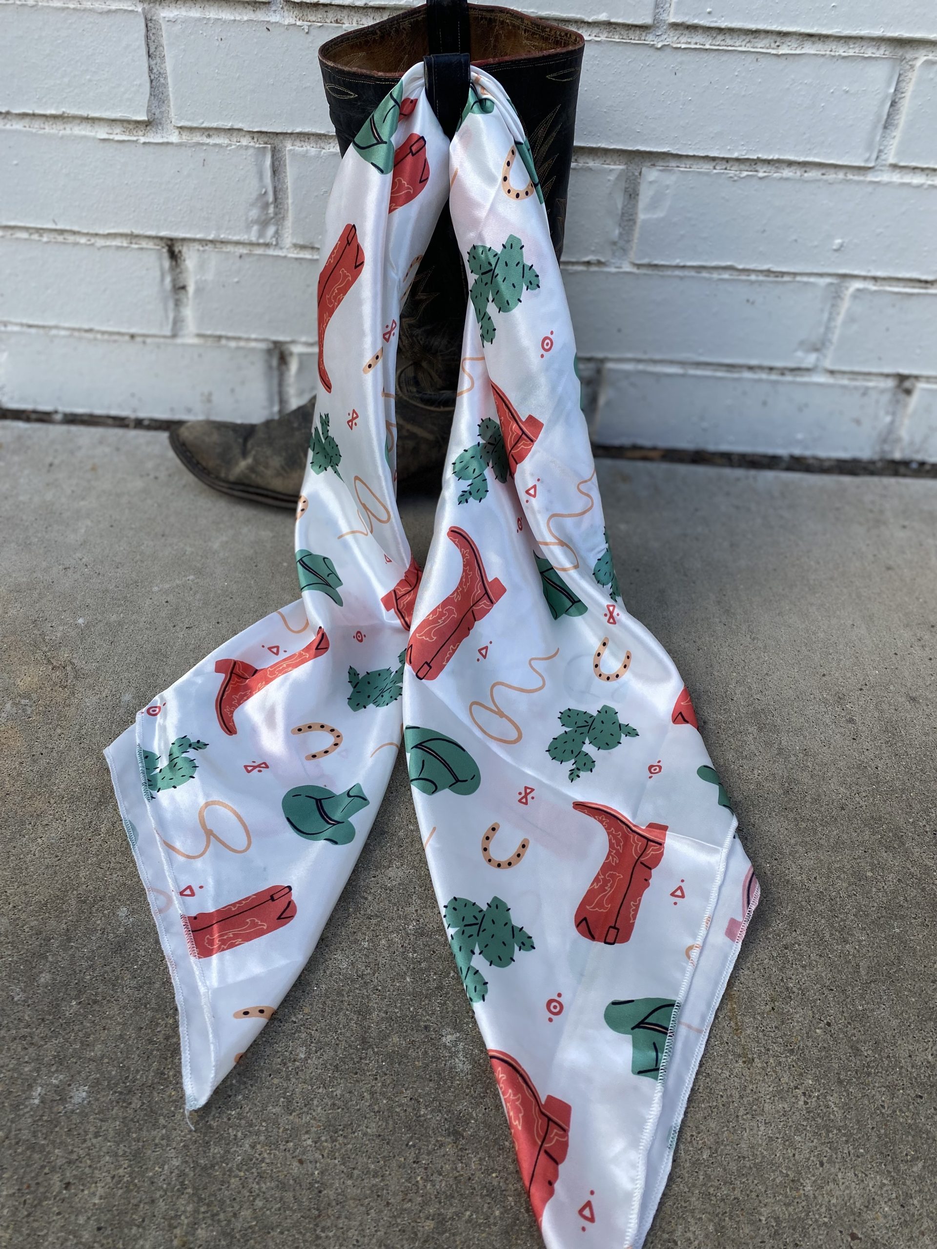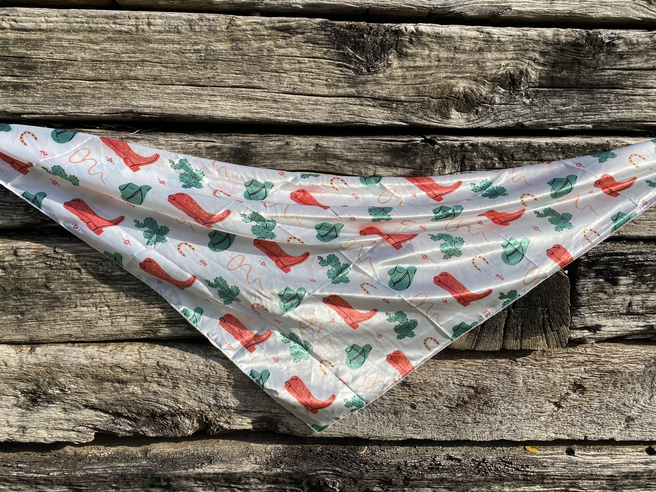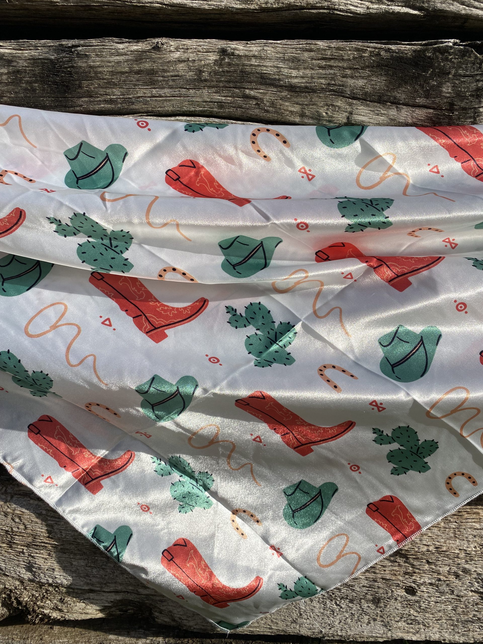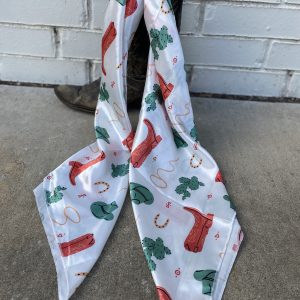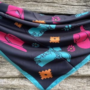 Add some fashion and function with the Western tradition of a wild rag! Use it to keep you warm and protected or as a fashion statement in your hair or on your purse!
